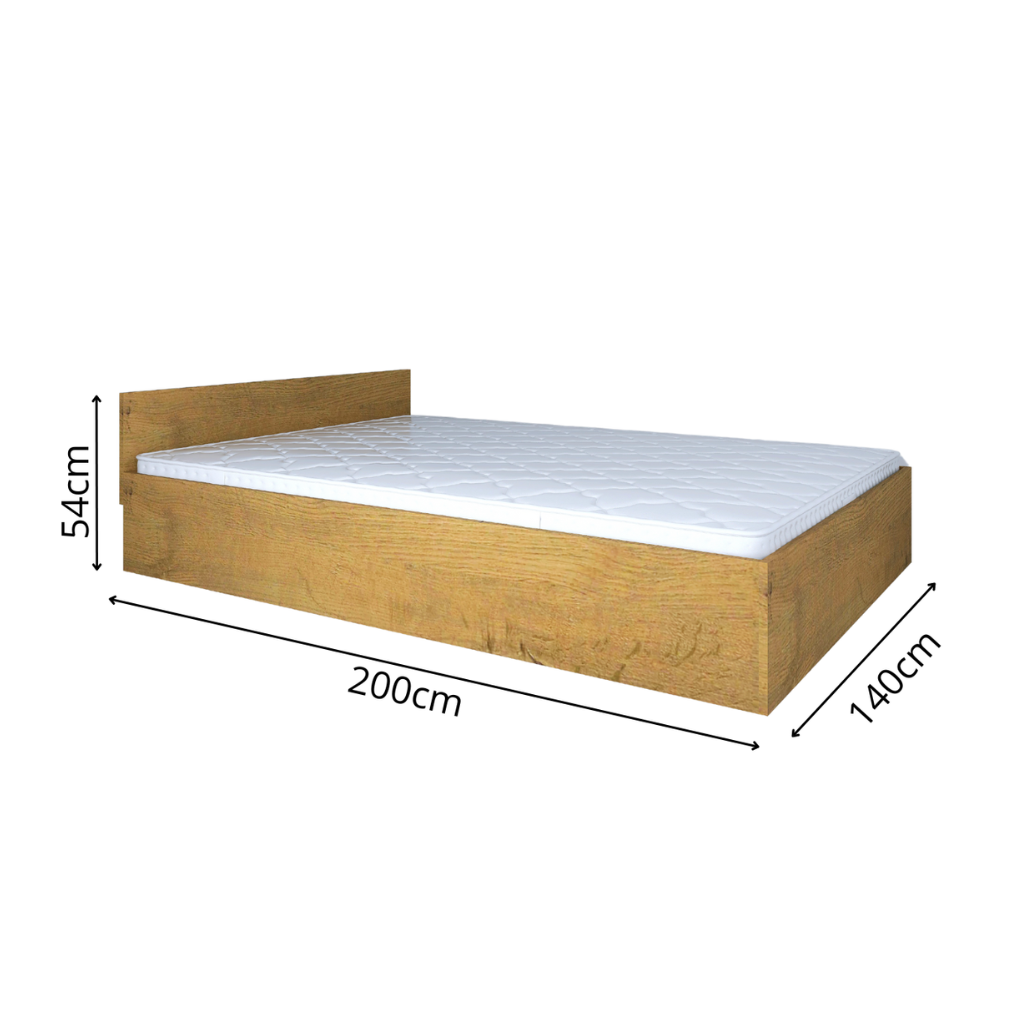 Łóżko z materacem 140×200 to solidnie wykonany mebel, który zapewnia wygodę i stabilność dzięki skrzyni z płyty meblowej oraz stelażowi z 12 listew. Dostępne w eleganckim odcieniu Dąb Lancelot, łóżko jest łatwe w montażu i doskonale komponuje się z każdym wnętrzem.